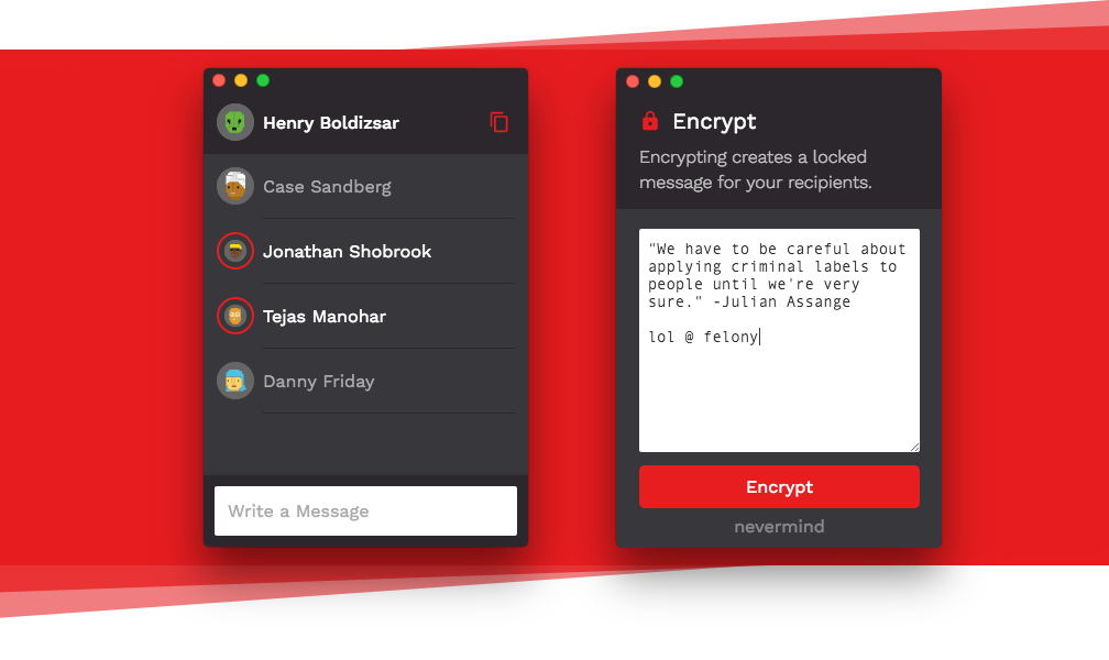 | Privatheit von Kommunikation | Menschen haben ein Recht auf vertrauliche, private Kommunikation die weder belauscht noch abgehört wird | Nachrichtendienste und Strafverfolgungsbehörden möchten kriminelle Elemente identifizieren | Regierungen und Behörden observieren alle Menschen, um ›kritische Stimmen‹ zu identifizieren |